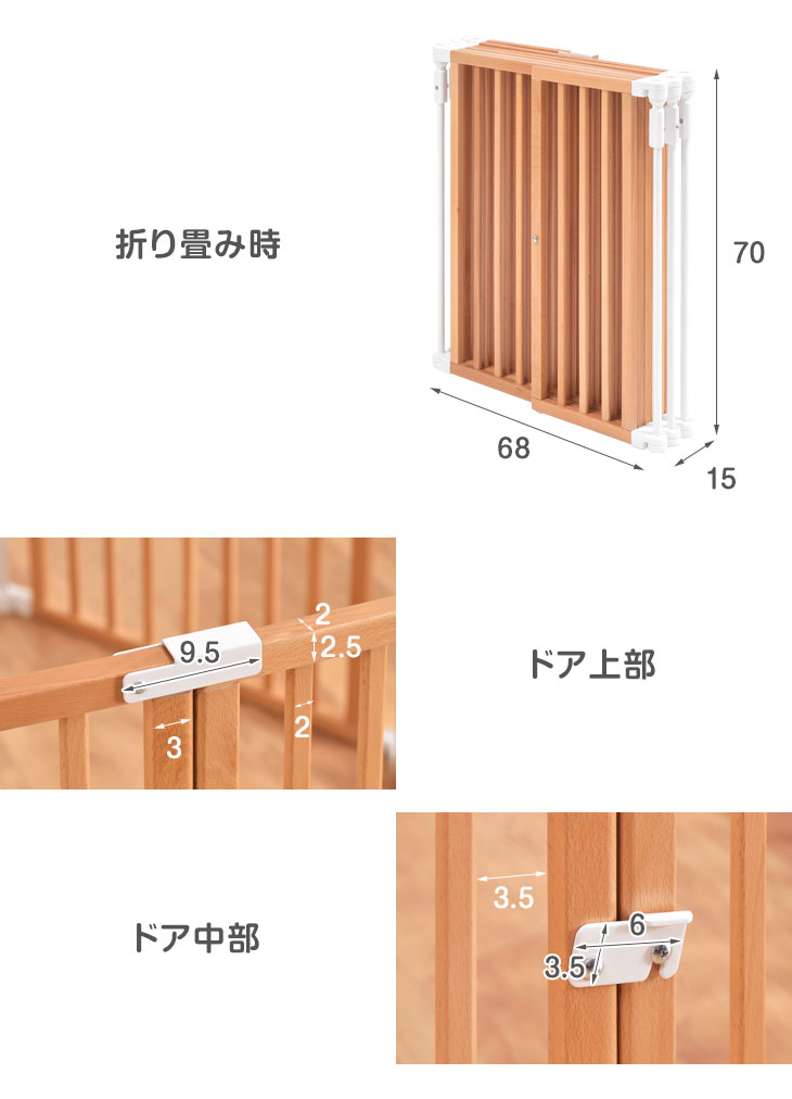 リーズナブルなペットサークルもございます グレー 仕様 サイズ [サークル形]外寸:最大(約)幅110 cm×奥行121 cm×高さ70 cm内寸:最大(約)幅 114cm×奥行131 cm×高さ70 cm [長方形]外寸:(約)幅 68cm×奥行131 cm×高さ 70 cm内寸:(約)幅62 cm×奥行124 cm×高70 cm [正方形]外寸:(約)幅68 cm×奥行68 cm×高さ 70cm内寸:(約)幅62 cm×奥行62 cm×高 70 cm [折り畳み](約)幅68cm×奥行15cm×70cm 【スタッフらんちゃんのおすすめポイント!】 ・完成品で、届いてすぐ使える ・70cmのハイタイプなので、大型犬でも安心 ・ドア付きなので、トイレなどのお世話も便利 ・折り畳みできるので、収納が便利(折り畳み後の厚みはわずか約15cm!) ・約9kg 軽量で、女性でも持ち運びが楽 ・多角形にできるので、お部屋の広さや用途に合わせて使えます・お部屋のスペースやわんちゃんの大きさに合わせて形を変えることができます ・ダブルロックドアなので、かしこいペットでも安心 ・硬くて丈夫なビーチ材を使用しているので、ペットが噛んでも傷がつきにくい 重量 約12kg 素材 ビーチ材(ラッカー塗装)スチール(粉体塗装)PP セット内容 パネル6枚 カラー ナチュラル 梱包サイズ 幅19×奥行78x高さ71cm 生産国 中国 送料 【送料無料(北海道・沖縄県・離島は送料別途)】 ※北海道・沖縄県・離島の場合はお問い合わせください。