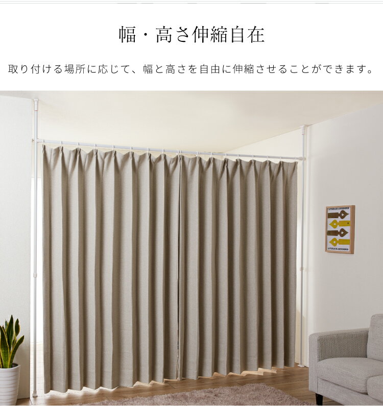 道具不要で女性でも簡単に取り付けできます! 280cmまでお部屋の間仕切りや目隠し対応できます。